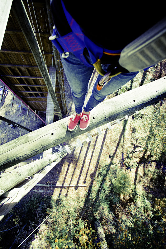 If you know me, you know that I am one of the least adventurous people on planet earth. Yesterday I went zip lining! Here I am standing 60 feet up in the air on a log to take pictures of Southern's alumni zip lining.